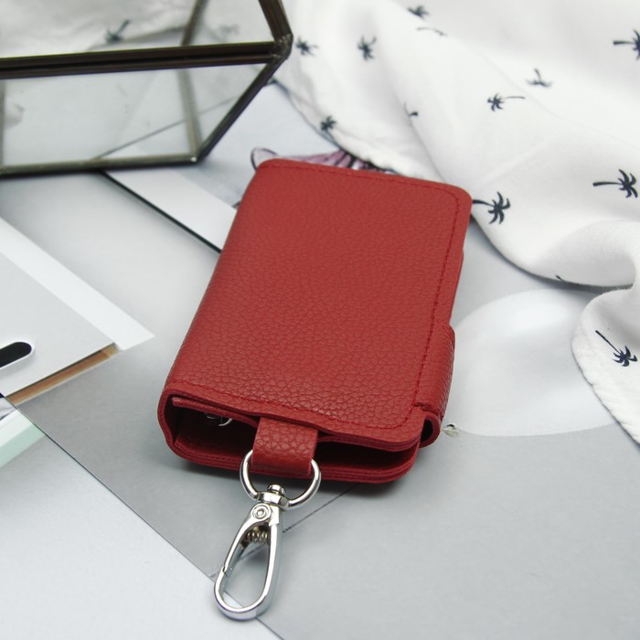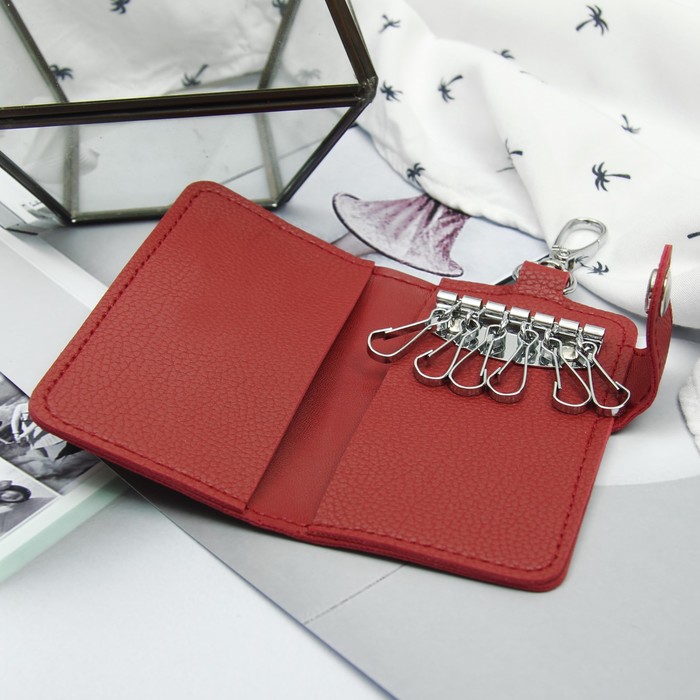 Ключница, 2 отдела, 7 карабинов, на кнопке, цвет красный