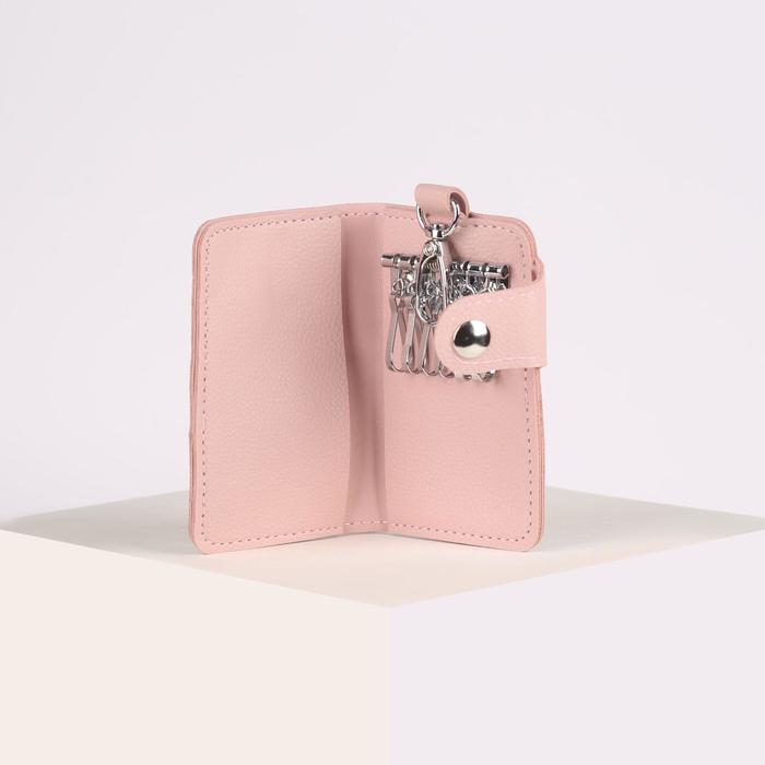 Ключница, 2 отдела, 7 карабинов, на кнопке, цвет пудровый