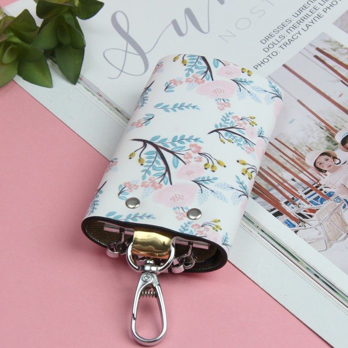 Ключница «Цветы», 6 карабинов, цвет белый