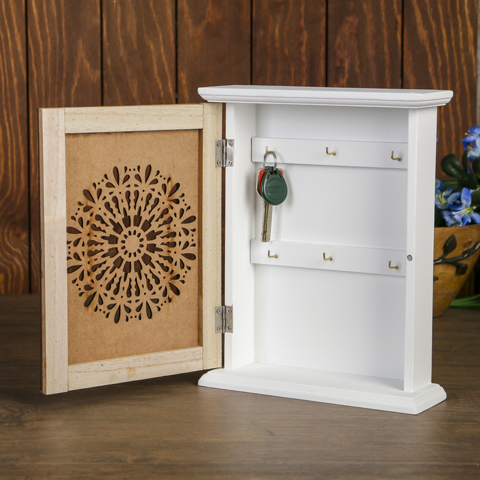 Ключница дерево 6 крючков "Ажурная салфетка" 26,5х21,2х6,8 см