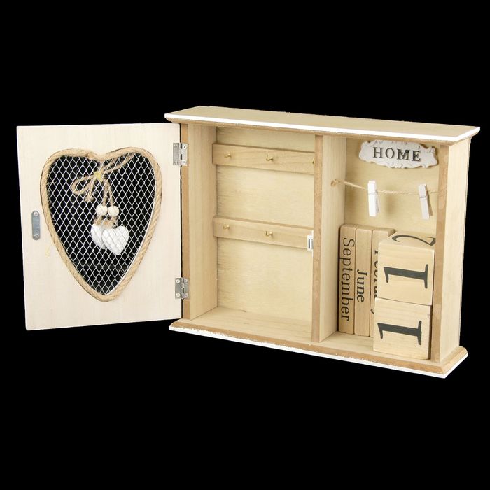 Ключница дерево 6 крючков "Прованс. Белые сердца" с календарем 24,5х32х8 см