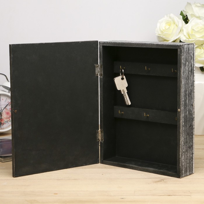 Ключница дерево 6 крючков "Розы на чёрном" 26х20х6 см