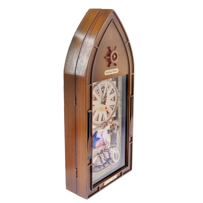 Ключница дерево 6 крючков с часами "Морское путешествие" 33,5х25х7 см