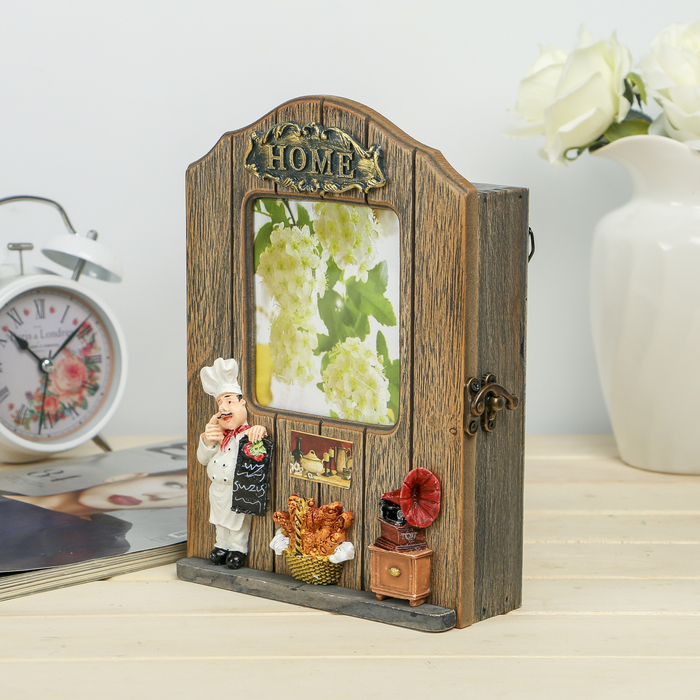 Ключница дерево 6 крючков с фоторамкой 10х11,5 см "Повар с меню" 24,5х17х5 см