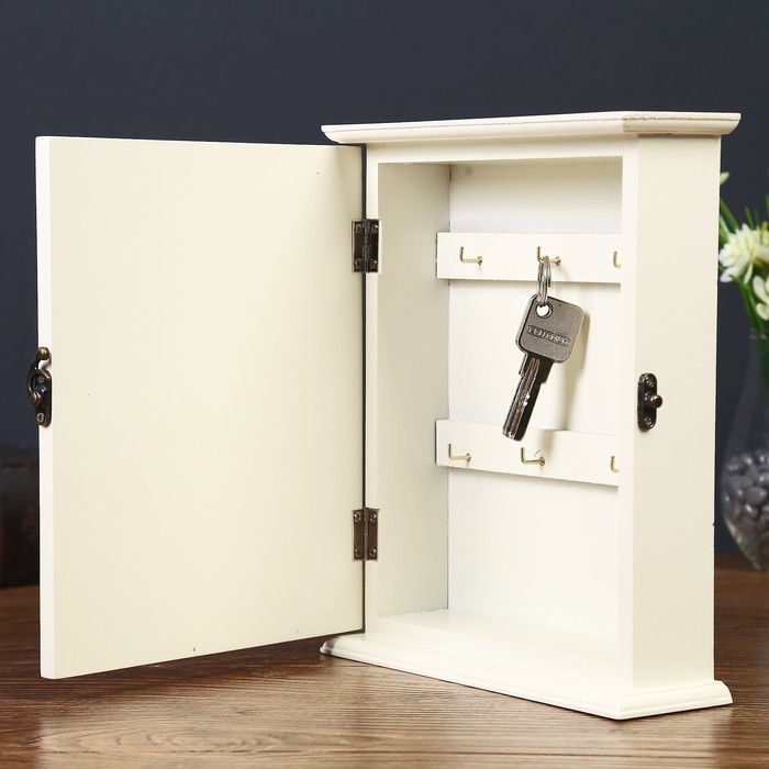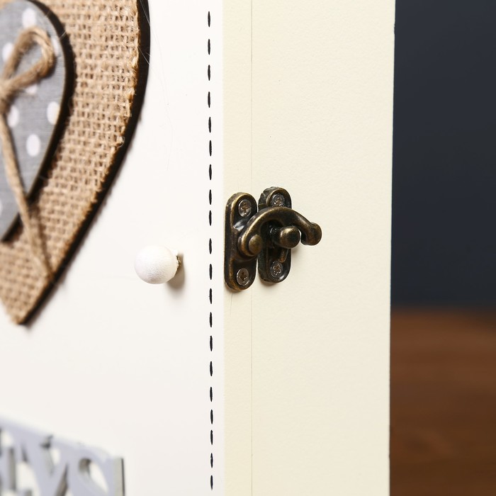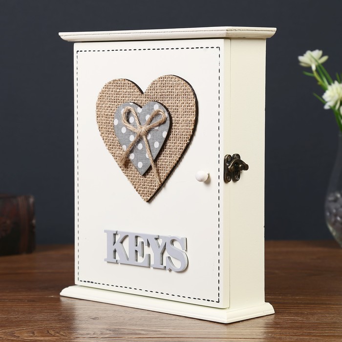 Ключница дерево 6 крючков "Сердечко в горошек с бантом. Keys" белая 24х20х6,5 см