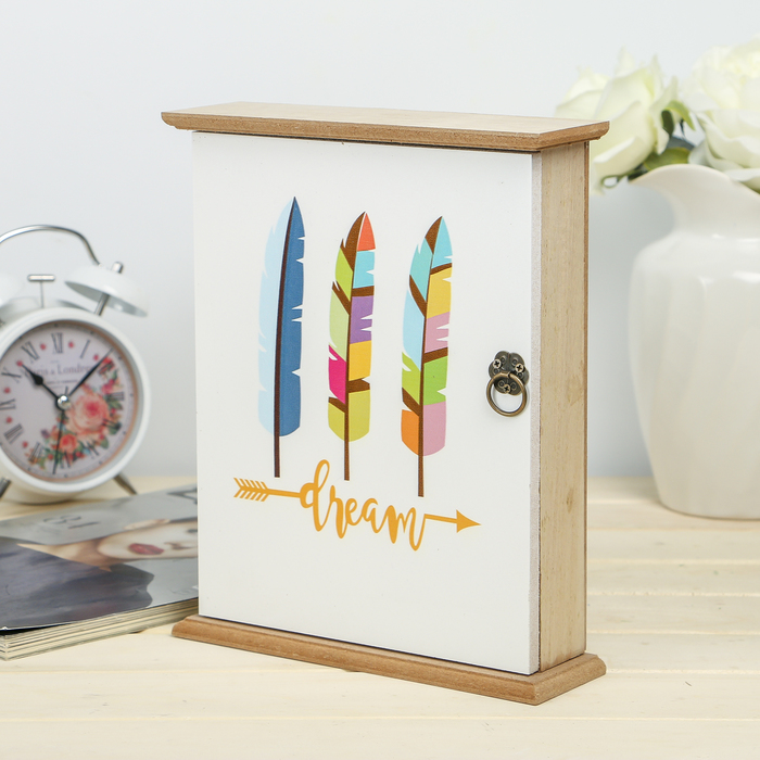 Ключница дерево 6 крючков "Три перышка" 24,5х19,7х6 см