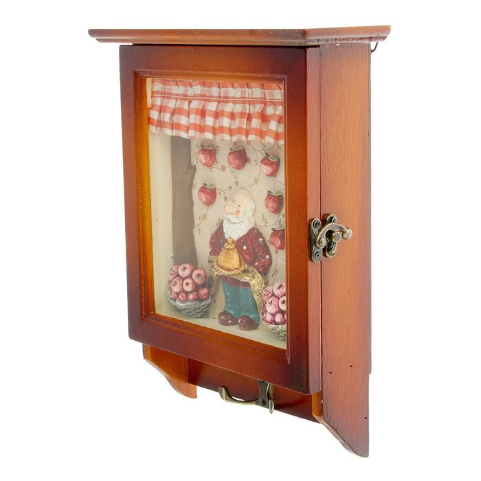 Вспомните, вам наверняка знакома такая ситуация: вы опаздываете на работу или по другим не менее важным делам, выбегаете на лестничную площадку и вдруг понимаете, что ключей ни в руках, ни в карманах нет, и одна только мысль о том, что сейчас придется искать их по всему дому, сразу катастрофически портит настроение. Чтобы не нервничать и не терять драгоценное время, Вы можете обзавестись ключницей, которая не только станет удобным вместилищем для ваших ключей, но и украсит собой прихожую. Эффектная ключница дерево "Домовёнок с яблоками" 29х22х8 см станет настоящей находкой для тех кто ценит время и порядок.