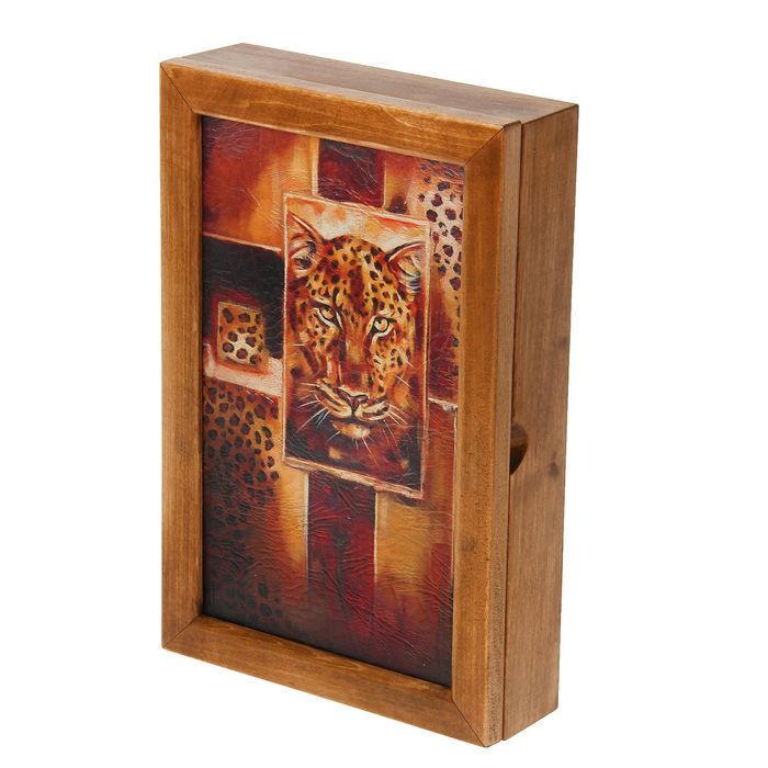 Ключница дерево "Леопард на коже" вставка кожа 29х19х6 см