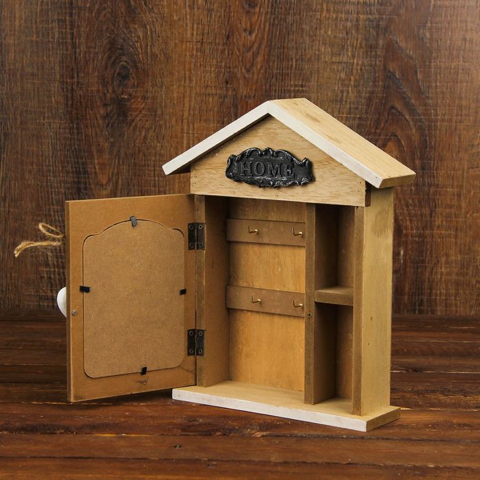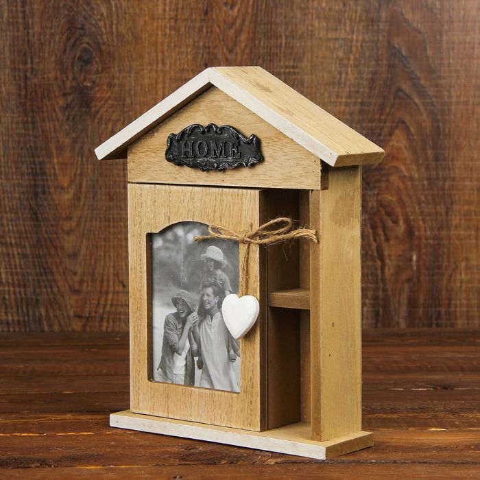 Ключница дерево с фоторамкой и полочкой "Дом. Сердце" 26,5х21,5х6 см