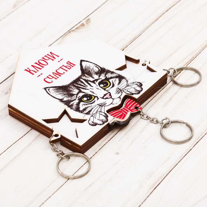 Ключница деревянная с брелоками "Ключи счастья"
