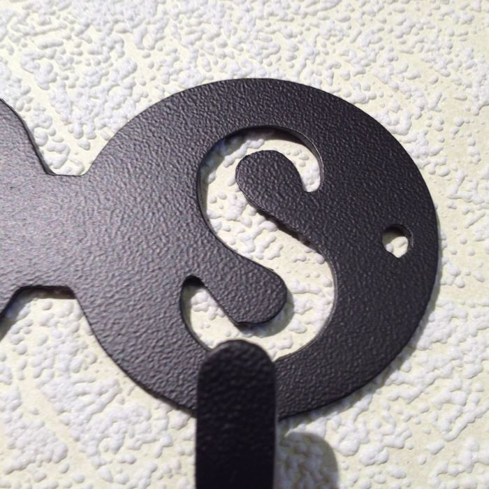 Ключница изготовлена из листовой стали толщиной 1,5 мм. Для антикоррозийной защиты и декоративной отделки покрыта специальной кузнечной краской. Чтобы выделить кованую фактуру изделия и создать эффект старины, в работе была использована патина.