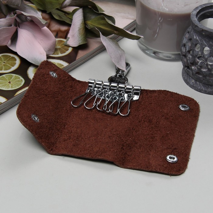 Ключница на кнопке, 7 карабинов, коричневый матовый