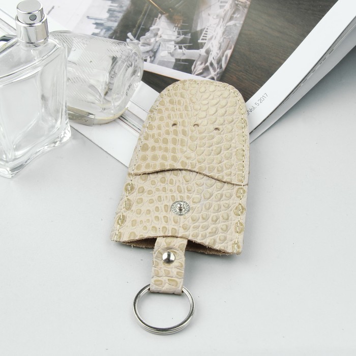 Ключница на кнопке, кольцо, кайман, цвет бежевый