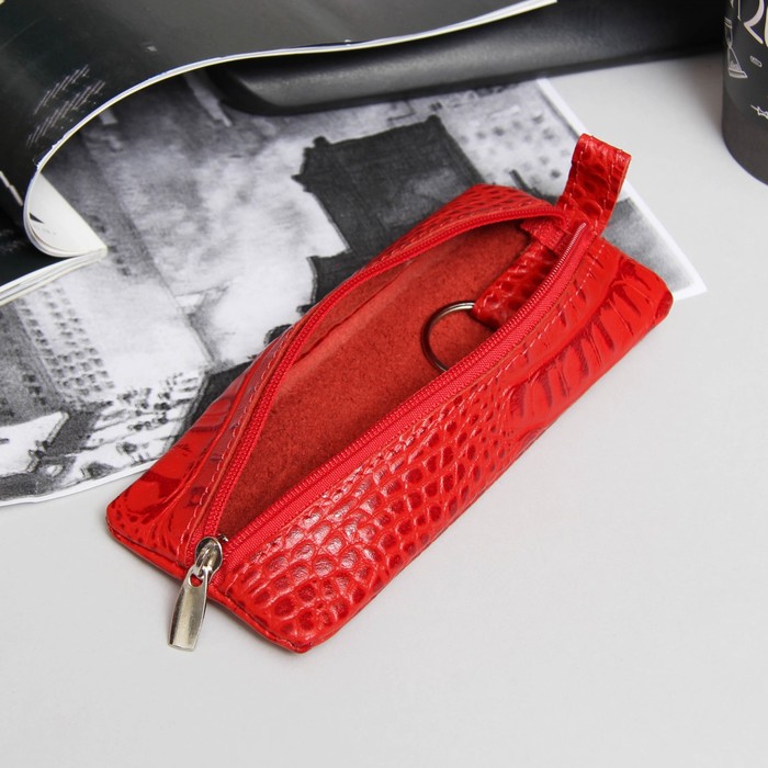 Ключница на молнии, 1 отдел, кольцо, кайман, скат, цвет красный