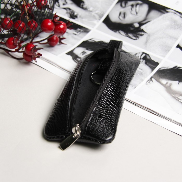 Ключница на молнии, 1 отдел, кольцо, ящерица, цвет чёрный