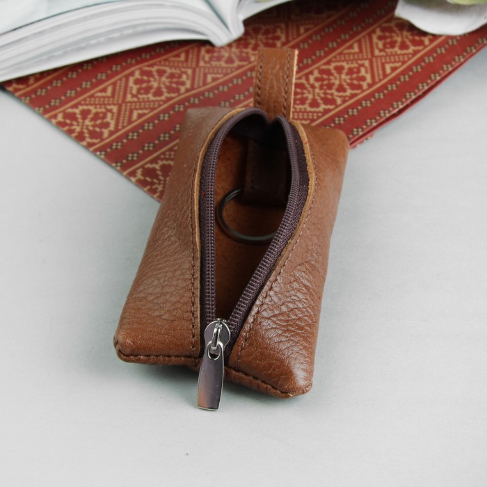 Ключница на молнии, кольцо, флотер, цвет коричневый
