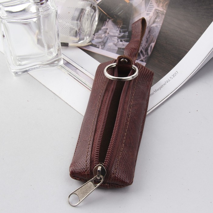 Ключница на молнии, кольцо, игуана, цвет тёмно-коричневый