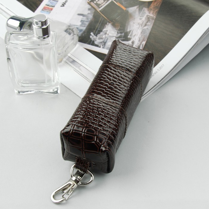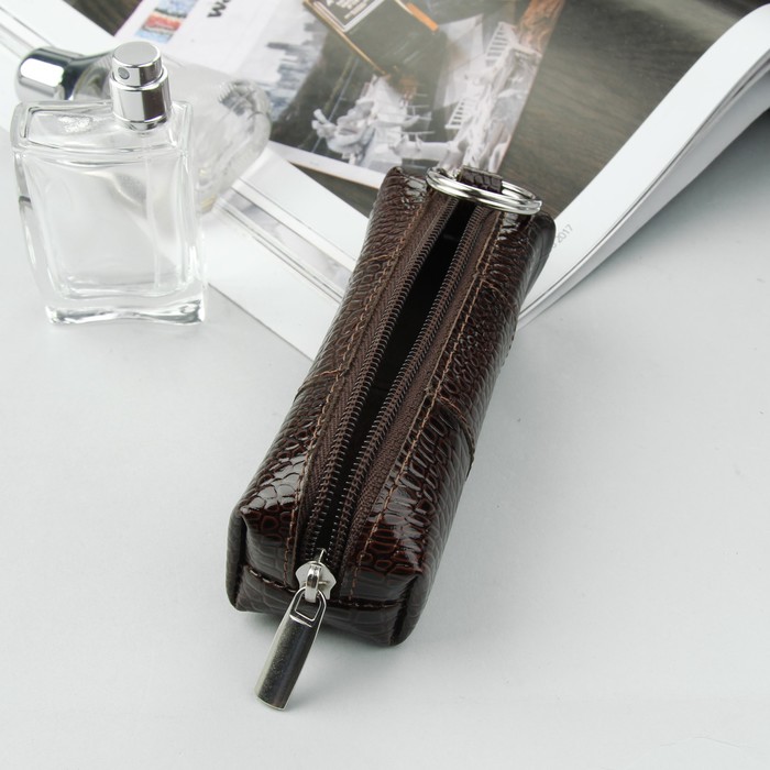 Ключница на молнии, кольцо, крокодил, цвет коричневый
