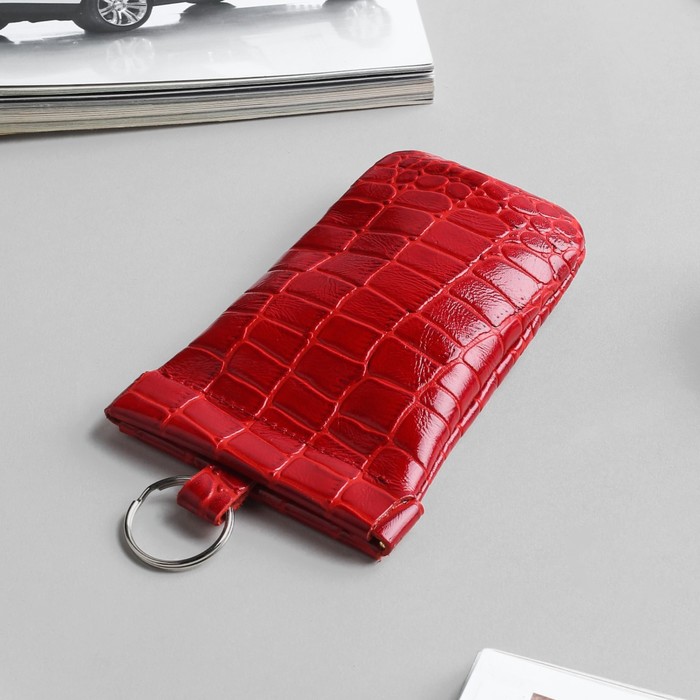 Ключница на пружине, кольцо внутри, крокодил, цвет красный