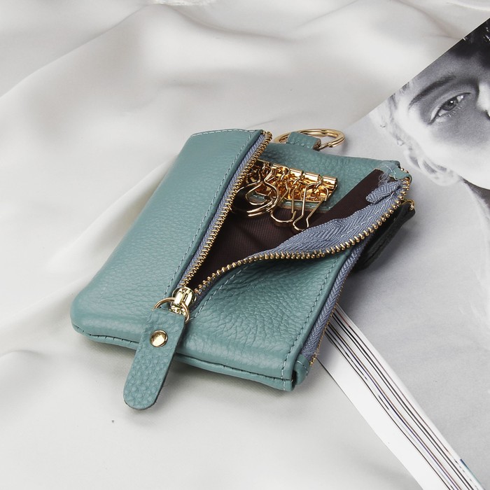 Ключница, отдел на молнии, 6 карабинов, кольцо, наружный карман, цвет голубой