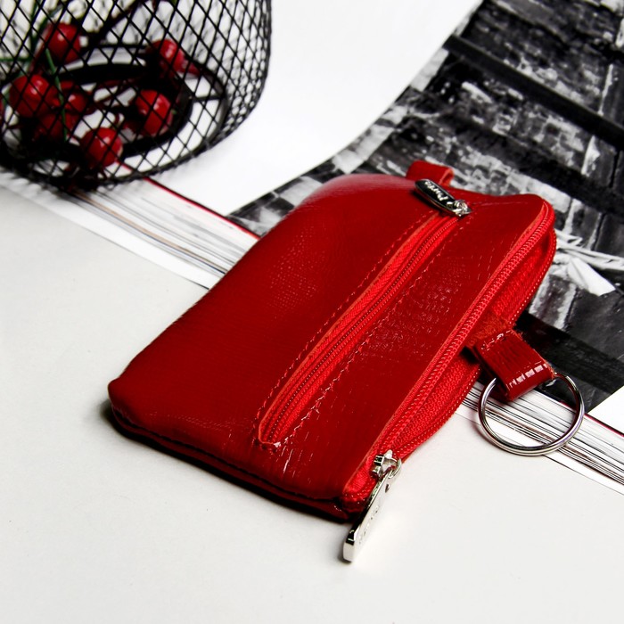 Ключница, отдел на молнии, кольцо внутри, наружный карман, ящер, цвет тёмно-красный