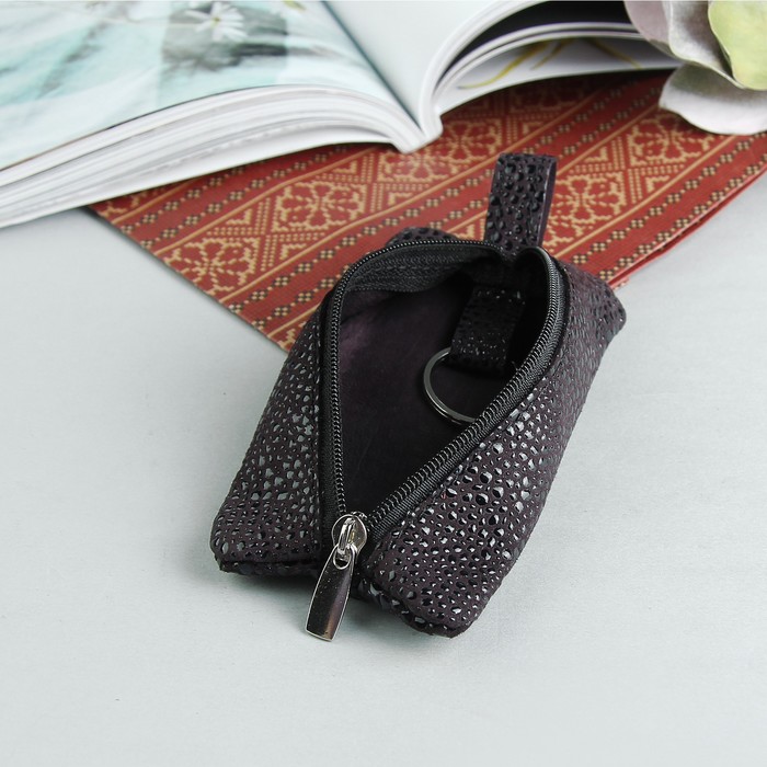 Ключница, отдел на молнии, металлическое кольцо, цвет тёмно-коричневый