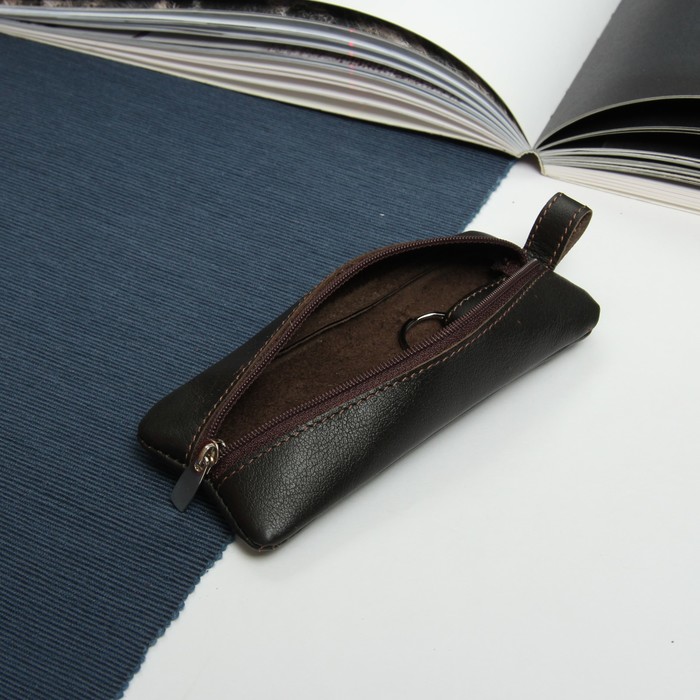 Ключница, отдел на молнии, металлическое кольцо, фантазия тёмно-коричневый