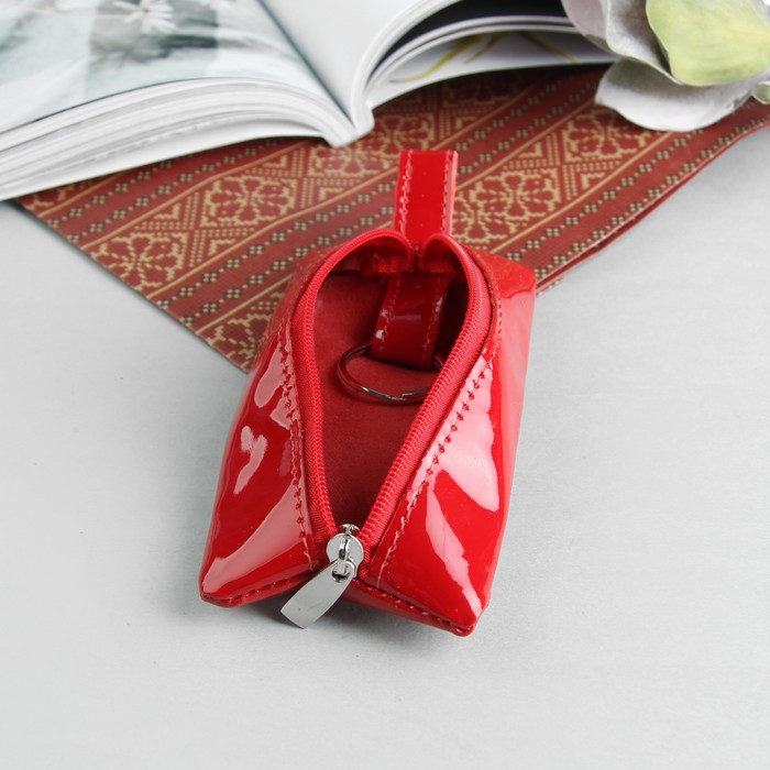 Ключница, отдел на молнии, металлическое кольцо, лак красный