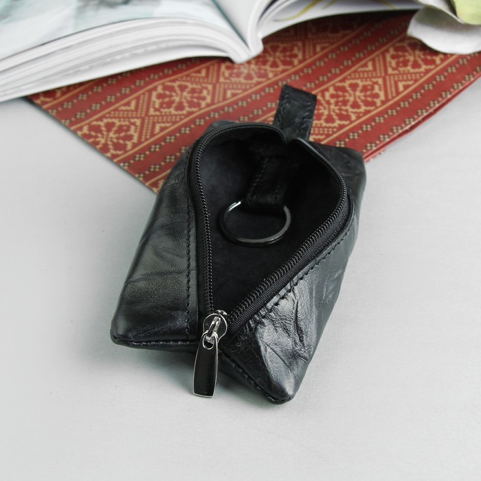 Ключница, отдел на молнии, металлическое кольцо, жатка, цвет чёрный