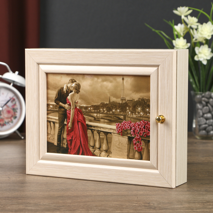 Ключница "Пара в Париже" беленый дуб 19х24 см