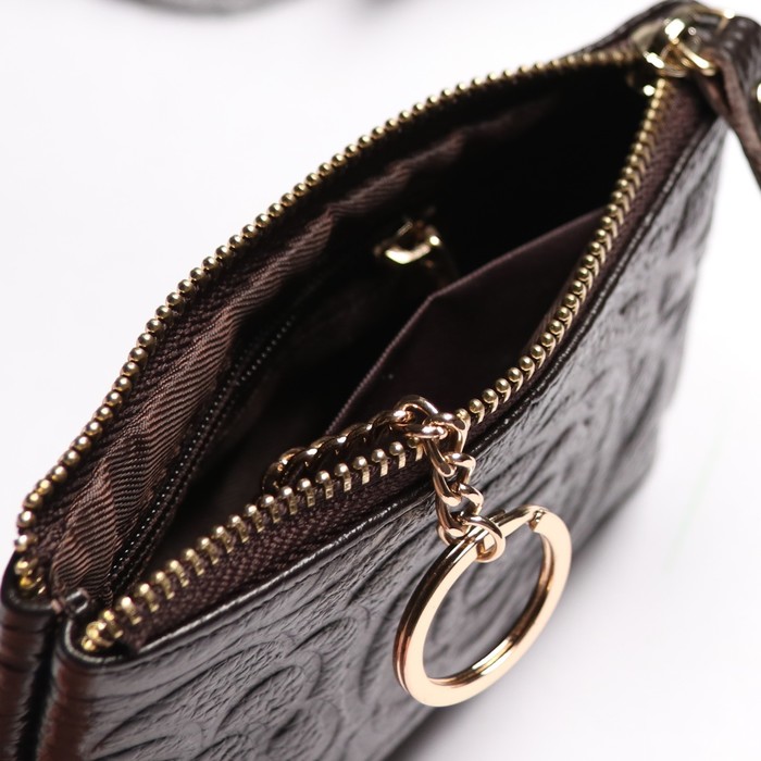 Ключница Роза, 13*2*8, отдел на молнии, с кольцом, кофе