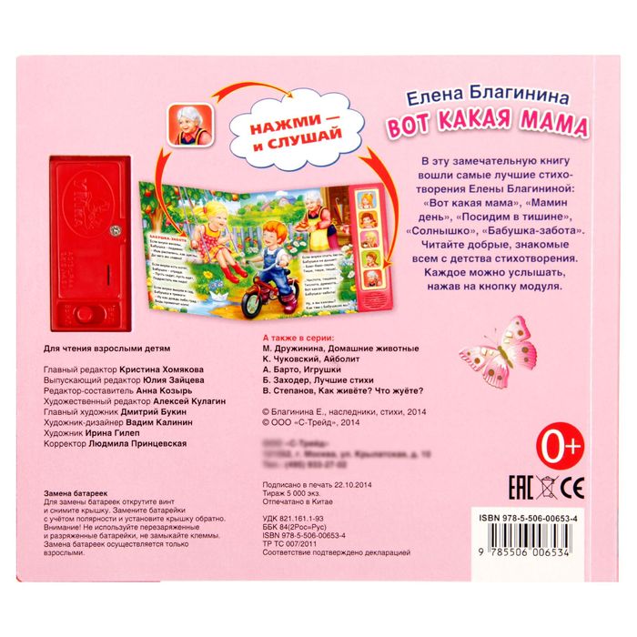 Книга "Е.Благинина. Вот какая мама", 5 звуковых кнопок, 10 страниц