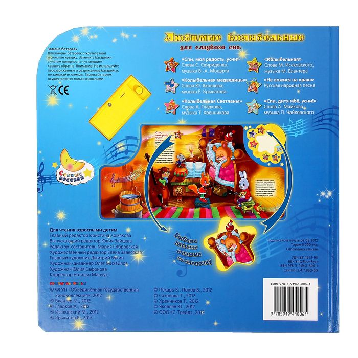 Книга «Любимые колыбельные» с ночником, 6 звуковых кнопок
