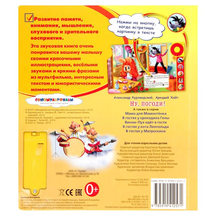 Книга "Ну, погоди!", 5 звуковых кнопок со звонком, 10 страниц