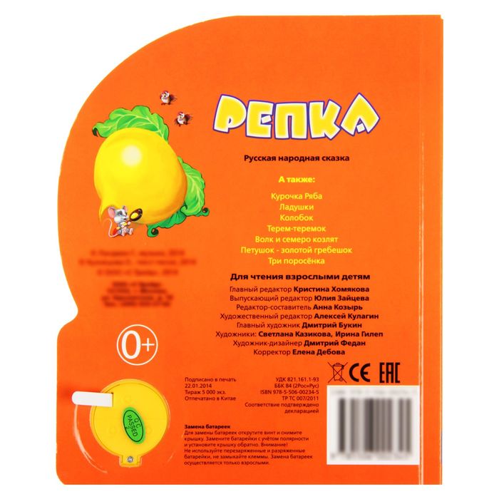 Книга "Русская народная сказка. Репка.", 1 кнопка с песенкой, 10 страниц