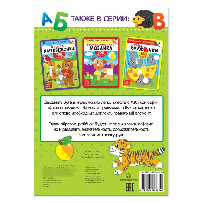 Книга с наклейками "Алфавит", 12 страниц