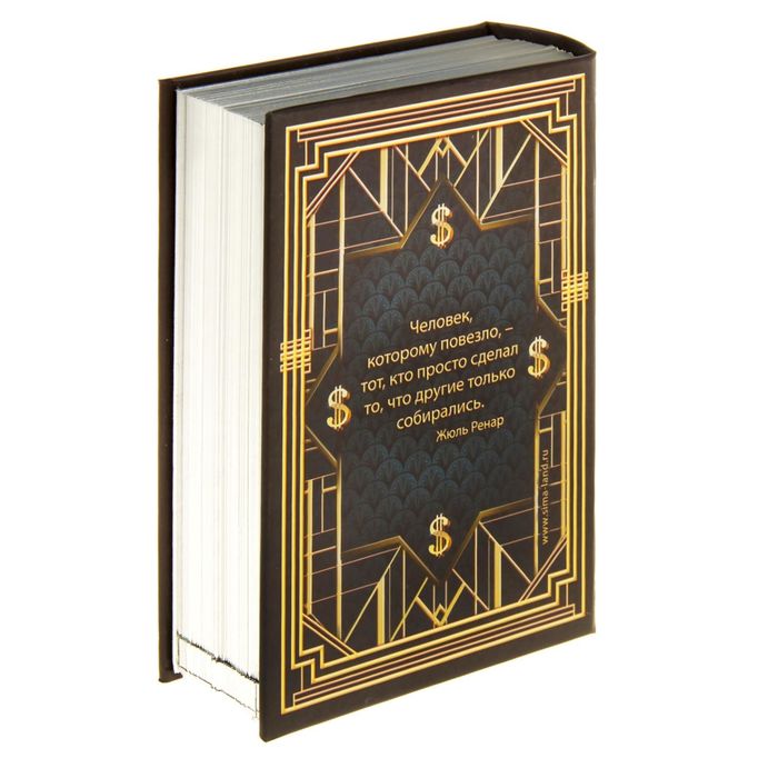 Книга-сейф — подарок для тех, кому есть что хранить. Её обложка выглядит правдоподобно, так что она не будет выделяться на полке в книжном шкафу и защитит накопления от посторонних глаз. Внутри расположен тайник, который надёжно запирается на замок.