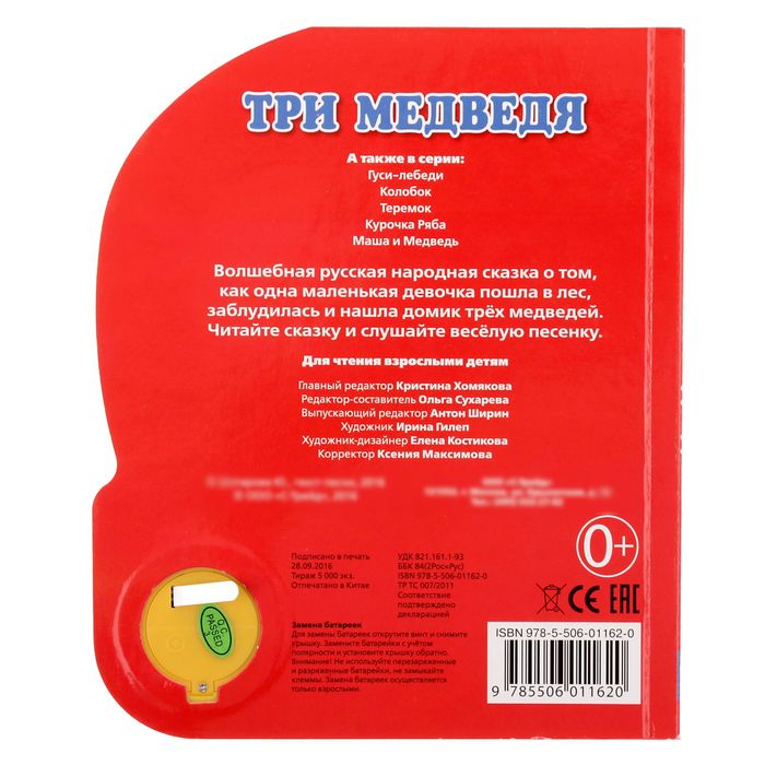Книга "Три Медведя", 1 кнопка с песенкой, 10 страниц — отличный вариант для тех родителей, которые привыкли окружать своего малыша только лучшими и качественными вещами. За такой книжкой ваш ребёнок проведёт время с пользой и удовольствием, узнает много нового и интересного.