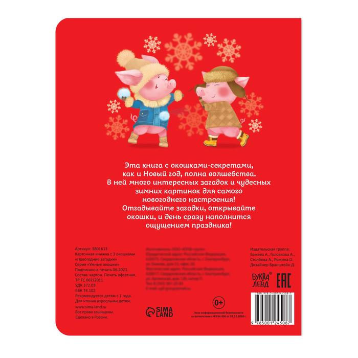 Книжка картонная с окошками "Новогодние загадки" 10 стр