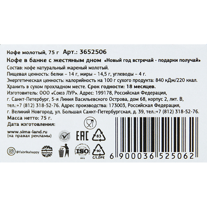 Кофе молотый в банке с жестяным дном "Новый год встречай - подарки получай", 75 г