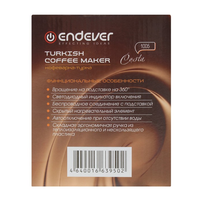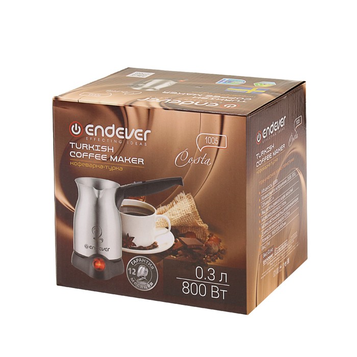 Кофеварка Endever Costa-1005, электрическая, 800 Вт, 0.3 л, цвет хром