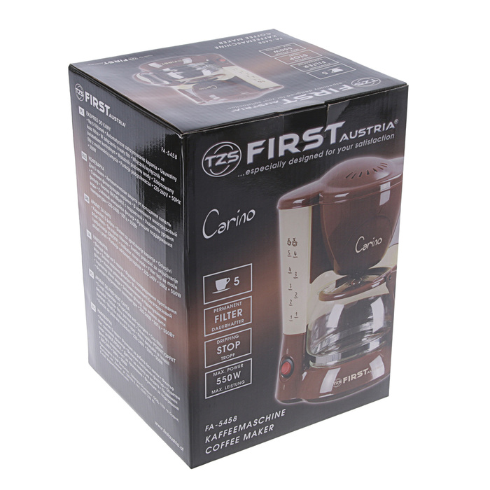 Кофеварка FIRST FA-5458BN, 550 Вт, 5 чашек, подогрев, коричневый