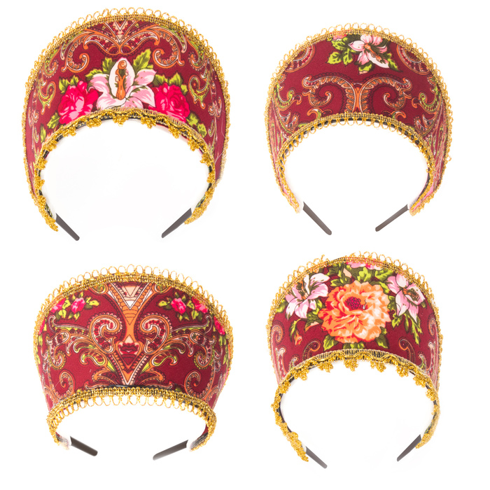 Кокошник "Вдохновение" на бордовом виды МИКС
