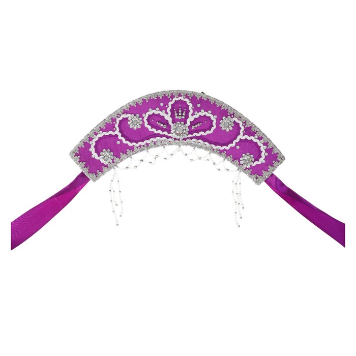 Кокошник "Виктория" с серебряной тесьмой, цвет фиолетовый — отличный подарок, который подчеркнёт яркую индивидуальность того, кому он предназначается. Аксессуар дополнит карнавальный костюм на вечеринке. Яркий головной убор выделит вас из толпы и сделает образ самым эффектным. Подарите себе и своим близким положительные эмоции и сделайте любой миг незабываемым!
