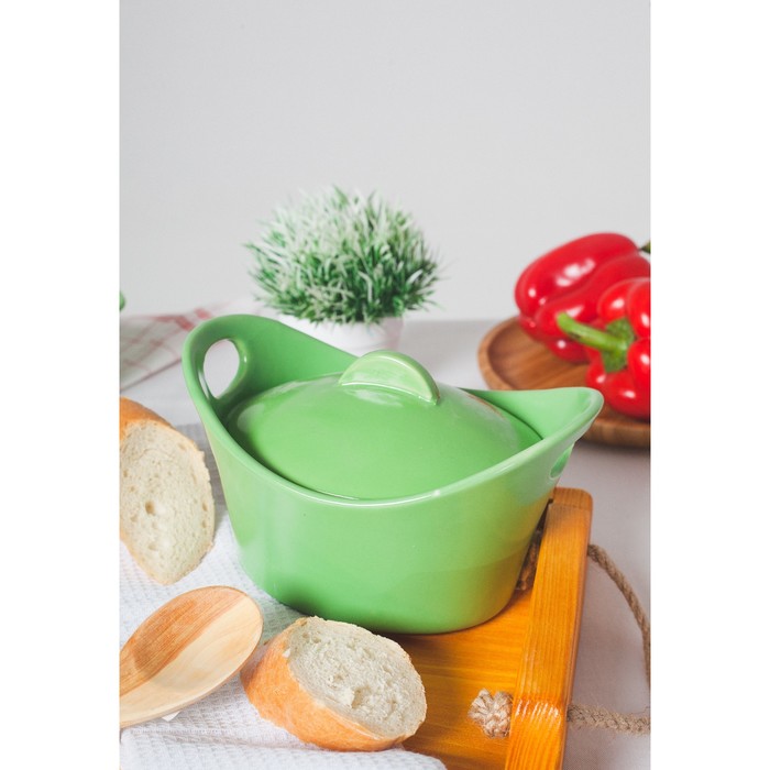 Кокотница с крышкой 500 мл "Базилик", цвет зеленый