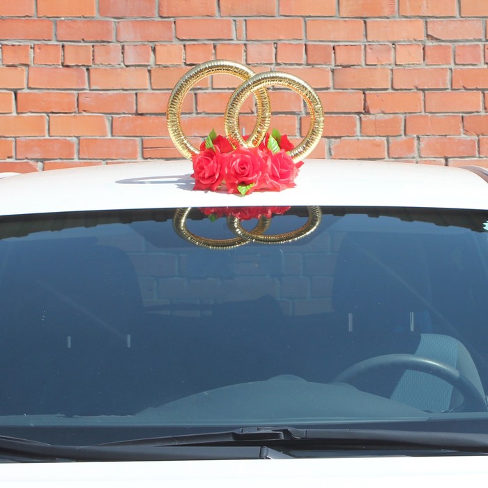 Кольца на крышу «Свадьба», красные — это красивое и оригинальное украшение для автомобиля, которое дополнит выбранный стиль мероприятия и передаст торжественное настроение вам и вашим гостям.