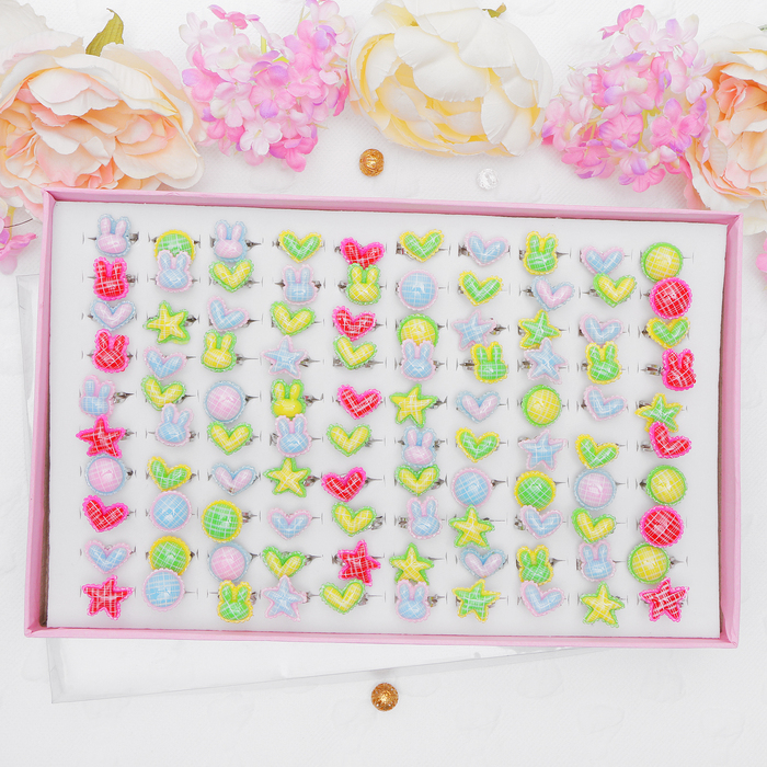 Кольцо детское "Выбражулька" формочки в ромбики, цвет МИКС, безразмерное, форма МИКС