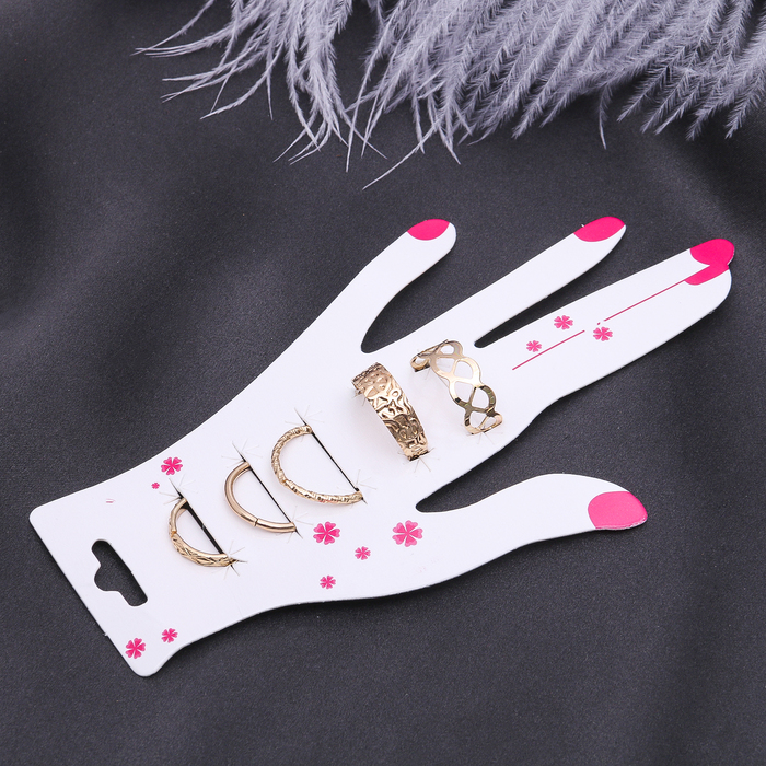 Ни один стиляга не будет выглядеть современно без искусно подобранных украшений, которые завершат его образ! Бижутерия — это современная недорогая альтернатива изделиям из золота и прочих драгоценных металлов. Кольцо на фалангу набор 5 штук "Ассорти", цвет золото, размер 14,15,16 МИКС — это то, что добавит вам шарма!