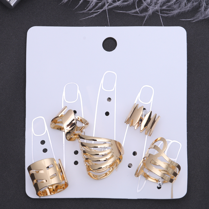 Ни один стиляга не будет выглядеть современно без искусно подобранных украшений, которые завершат его образ! Бижутерия — это современная недорогая альтернатива изделиям из золота и прочих драгоценных металлов. Кольцо набор 5 штук "Ассорти" волна, цвет золото, безразмерные — это то, что добавит вам шарма!
