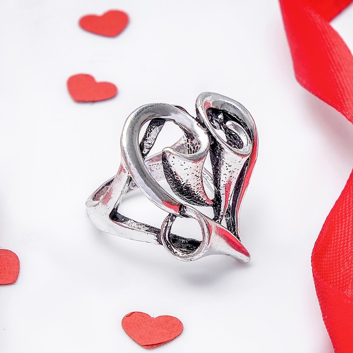 Ни один стиляга не будет выглядеть современно без искусно подобранных украшений, которые завершат его образ! Бижутерия — это современная недорогая альтернатива изделиям из золота и прочих драгоценных металлов. Кольцо "Сердце", размер 17, цвет чернёное серебро — это то, что добавит вам шарма!